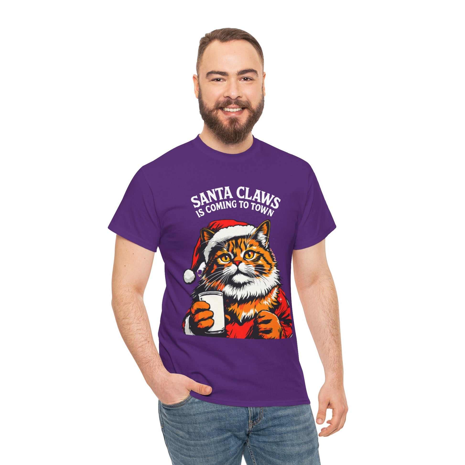 Embrace the festive spirit with this stylish Unisex Heavy Cotton Tee, featuring a playful Santa Claws is Coming to Town design 🐱🎅. Perfect for cat lovers, this holiday shirt is both cozy and eye-catching — making it the purr-fect Christmas gift for friends, family, or yourself.